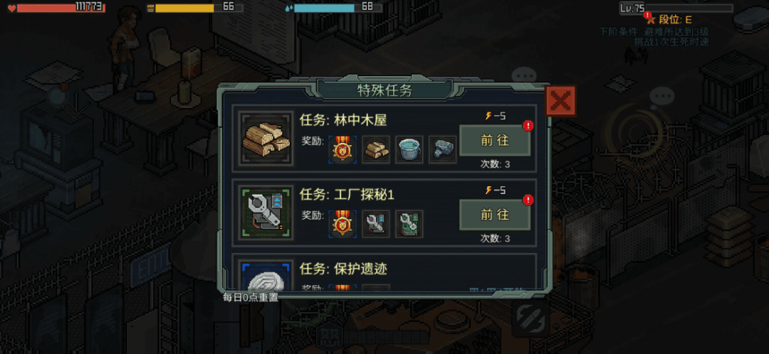 hello幸存者们,今天为大家分享像素危城中的特殊任务玩法。在生死时速玩法中,我们可以获得宠物的进阶材料,而在特殊任务当中我们则可以获得宠物的升级材料。
