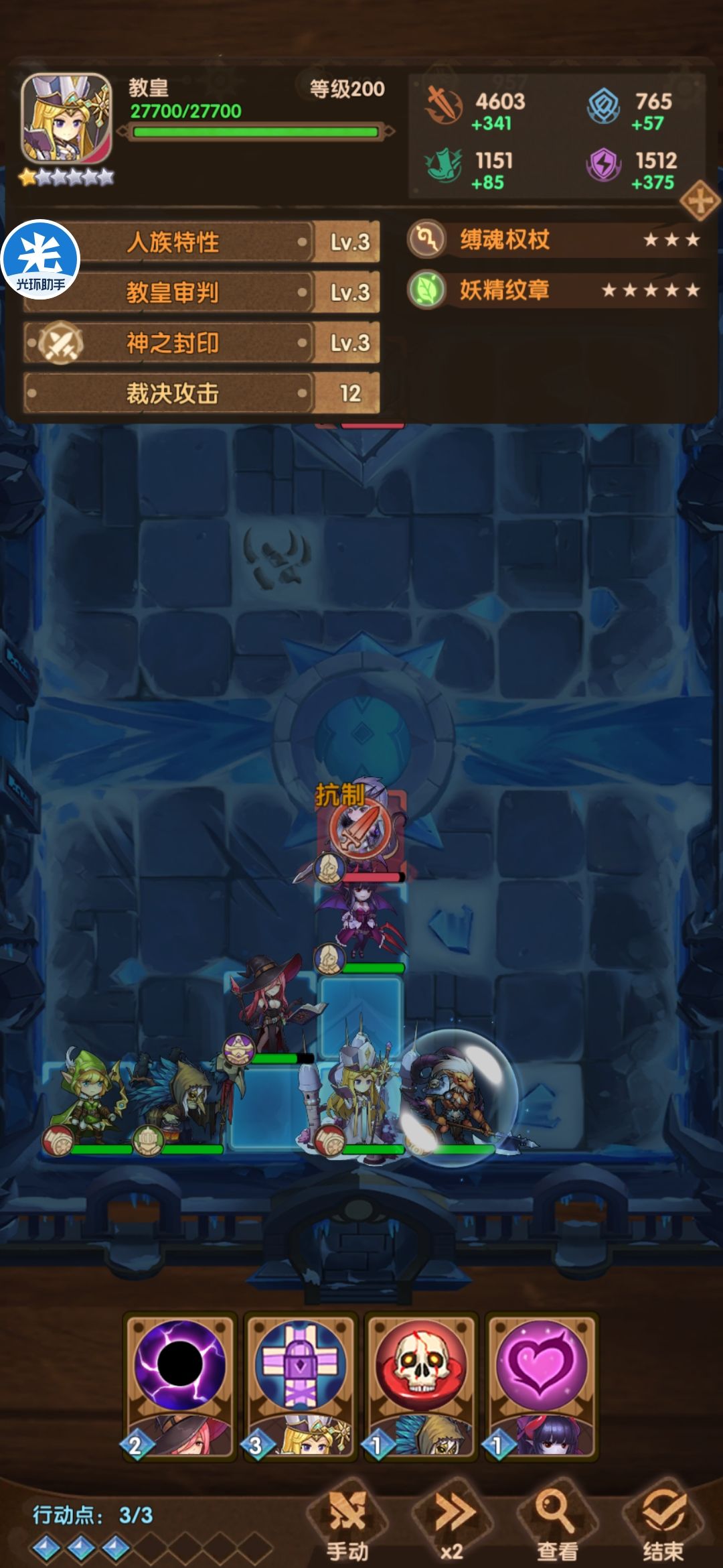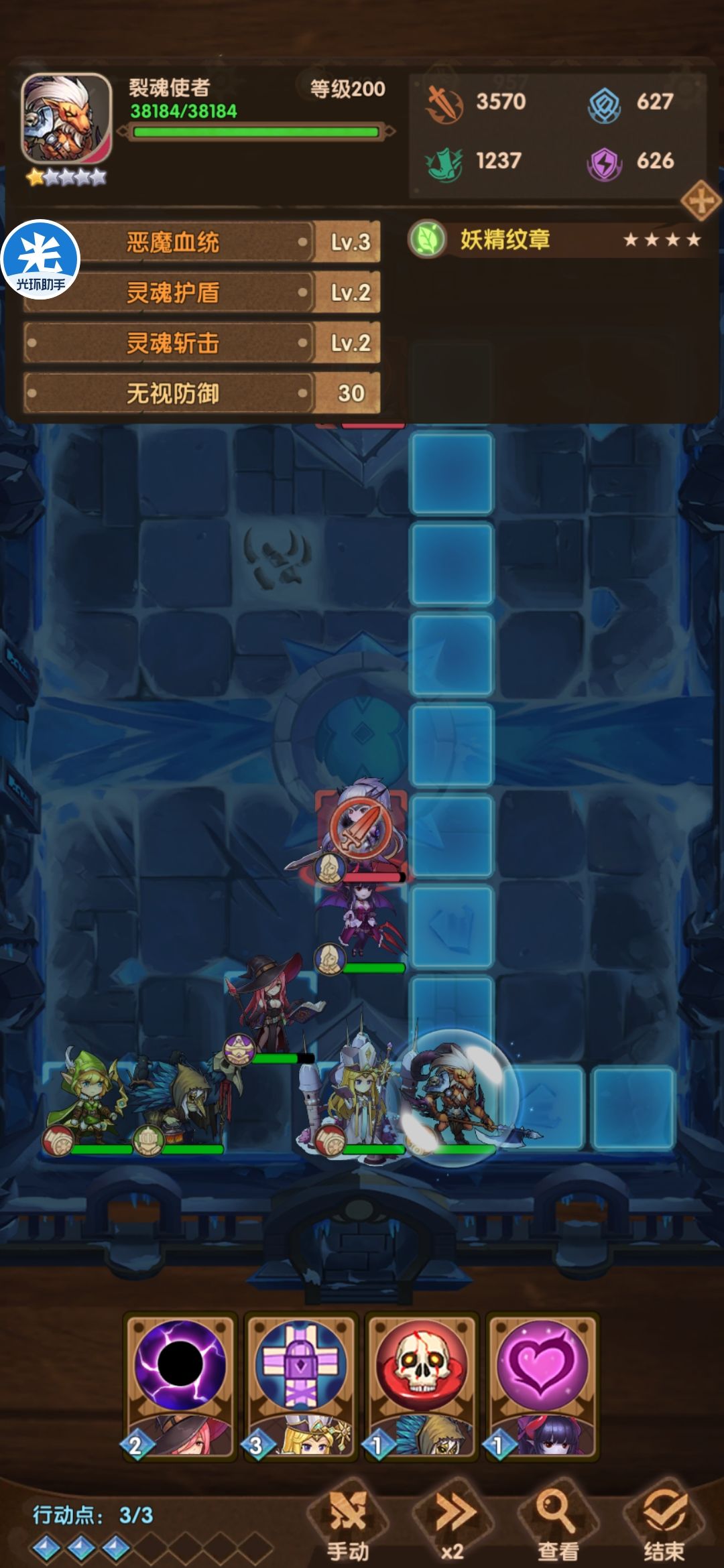 其实还可以用人族的第一个城堡,利用合击打伤害,这样猎魂和魅魔还能再输出一次。