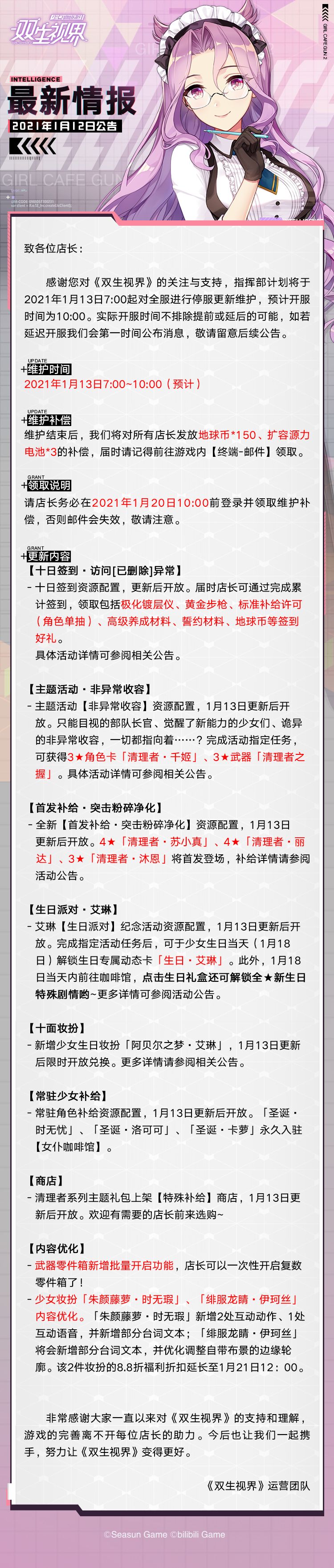 【双生视界】1月13日维护公告