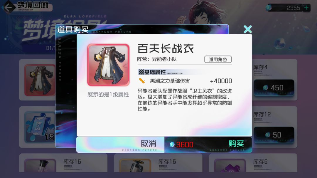 2、这是艾尔莎的专属藏品,3600露珠购买后可以通关挑战和常驻任务继续获得升级材料,目前已知藏品可以升级到绯阶四星,提升效果为:艾尔莎的黑潮之力伤害为:299999。