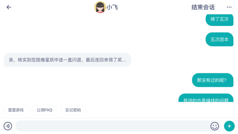 团本困难星辰一直掉线,反映5次一次没有给回复、客服人员一直在推脱