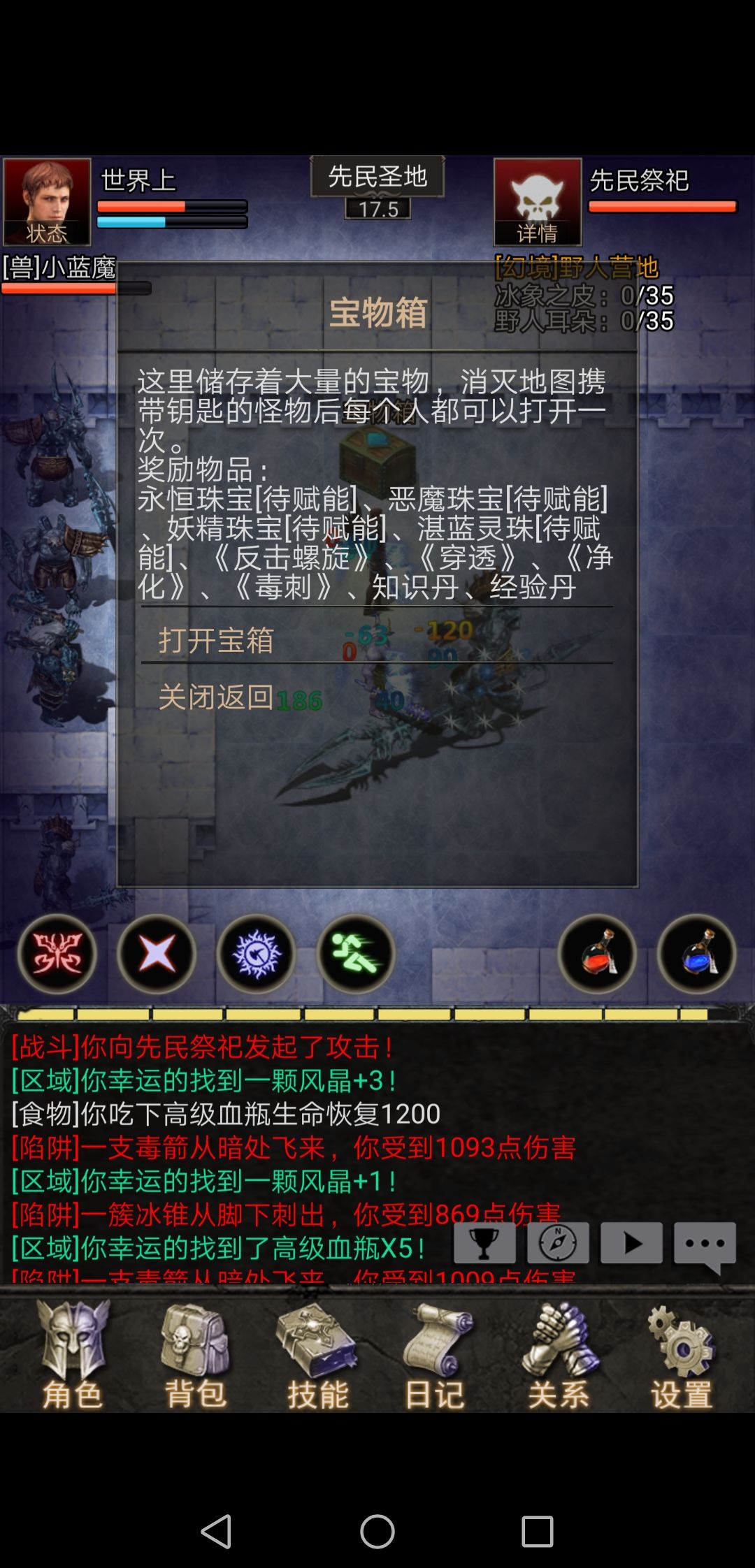 幻境危险,需要小心陷阱。打开宝箱会随机获得技能与物品,在获得没有自己可使用的物品后,可在世界聊天与其他玩家交流,互相换取所需技能与物品。跟着游戏指导升级做任务轻,并任务奖励装备可轻松打怪挂机升30级。