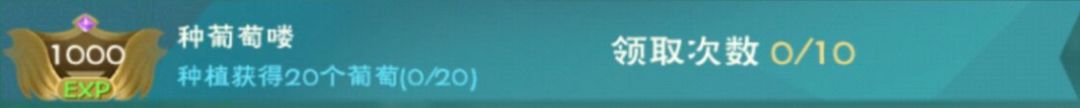 通过种植获得20个葡萄,每次1000经验,可以完成10次,一共可以获得10000花园经验