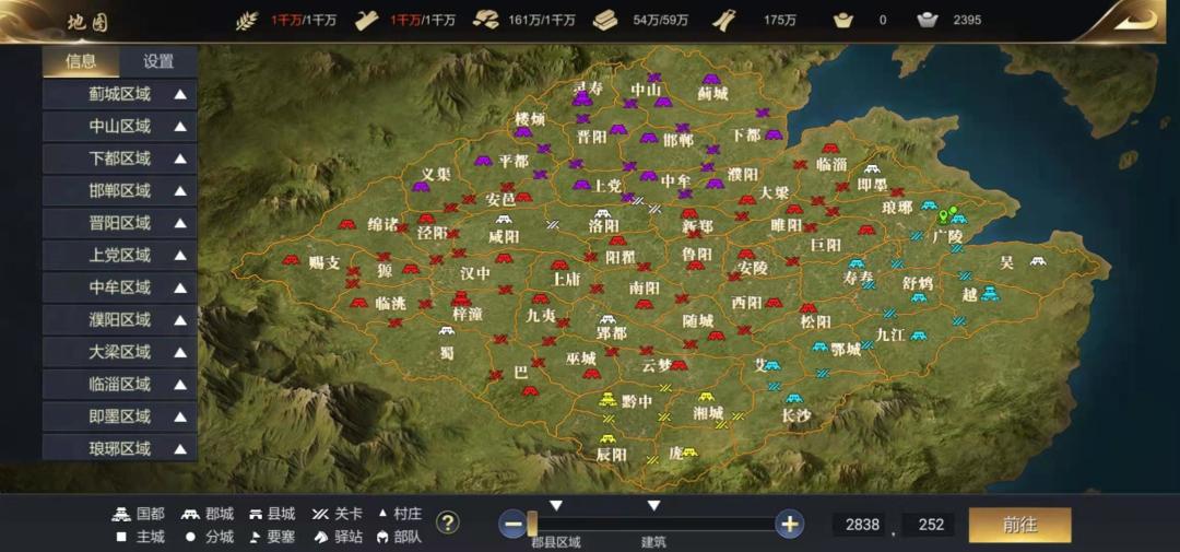 鲁阳战役,双方僵持四天互有胜负,陶丘南侧由纵横占据,巅峰数次进攻始终功亏一篑,很快二级关卡开放,巅峰再次举兵发难,纵横大败巅峰于陶丘南侧,并迅速占领桐乡从而占据主动,大梁、睢阳风声鹤唳,巅峰高层当机立断,放弃前沿阵地,退守寿春同时占领吴越广陵,互为犄角。另一边纵横大军长驱直入,南合黑冰直指漆邑,北破流沙虎视临沐。巅峰节节败退,与流沙同病相怜,抱团取暖,以游击战术小范围打击敌人。