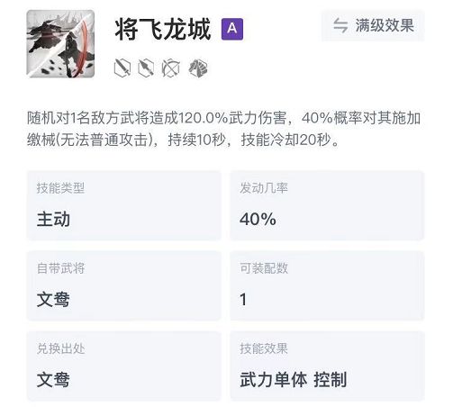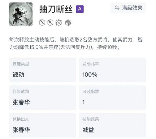 千里单骑:拥有范围性武力输出还附带缴械特效,是一个强大控制技能。↓↓