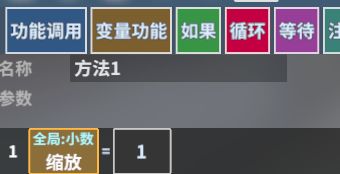 接下来我们要给这个列表里面的敌人一个爆炸冲击力,回到“手雷”的启动事件的逻辑编辑器,拖动“功能调用/创建变量/小数”