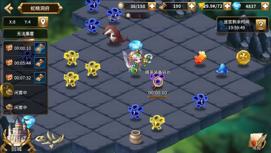 是一个比较小型的洞府地图,里面有穿山甲在守卫,地上都是遗留下来的宝物,金币,万能碎片,传说装备碎片,还有陶罐可以产出道具。每个道具只需消耗一个探险点,而能采集到的碎片都是不定量的,需要一点小的运气,说不定就能凑一个金色传说出来呢!