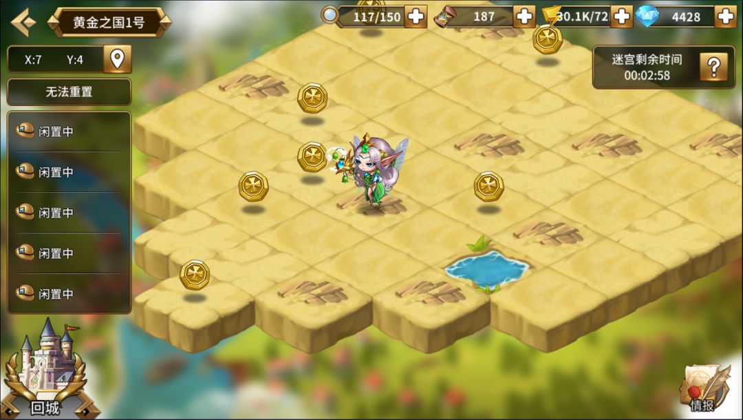 每个地图一定会拥有一个单独的金闪闪,他处在迷宫地图之外的一个空间,有专门的通道,每个地图空单独宝箱位置不同,但一定会有一条路属于这里。地图所设定的时间是完全足够找所有宝箱的,但是中途如果开小差的话可能会无法拿完全部哦!整体的地图并不是很复杂,如果不想一点点移动的话,可以直接点击想要达到的地方的地面,角色就可以自行行走啦!