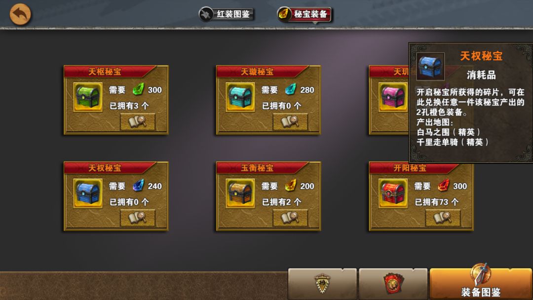 天权密保,产出于精英的白马之围和千里走单骑,240碎即可换一个。速刷的话选择白马之围会快很多,可以TapTap搜索攻略学习。