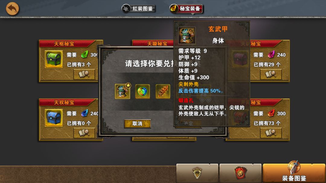 玄武甲,体9防9,生命300,反击伤害增加50%。