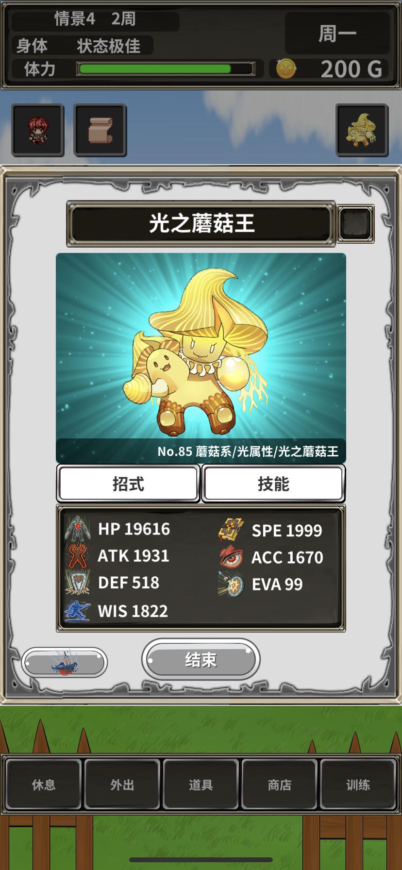 点火山,刷漆黑蛋或魔王蛋,蘑菇王是最好刷的蛋,属性成长也好。金币买培养药,训练攻击力两次,睡觉,刷攻击或速度,药效没了应该是星期五,外出两天,晋级挑战后睡觉回状态,吃药训练,星期五、六再外出。外出刷白头发男子+300智力,或者鱼人20%属性,或见习魔法师20%属性,练魔攻的可以去碰技能,蓝衣服一级,上面那个二级,酒馆那三级,田后那是四级。门口那女的挑战前面不要去,700多全属性,加300左右防御。 酒馆白头发500左右全属性,加300攻击力。