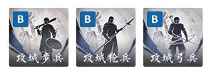 ②武将的兵种:兵种笼统的区分为近战和远程,一般阵容都是最多只能放进一个弓兵兵种,原因就是弓兵兵种的易伤属性导致其身板太脆,由多弓兵组成的阵容一定需要有合适的减伤武技来提高队伍的坦度;