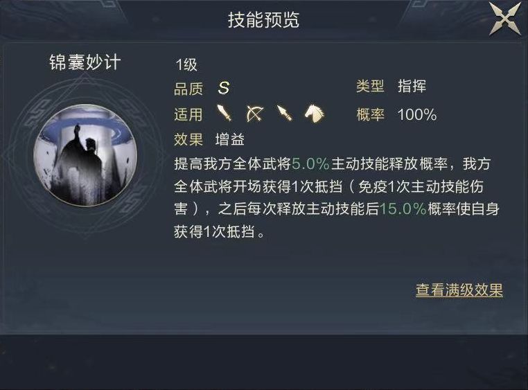 ①挑选出合适的武将组成队伍后,我们就要开始为这个队伍搭配合适的技能了,那么搭配技能就需要知道一些基本的知识,首先我们需要知道技能的四大类!