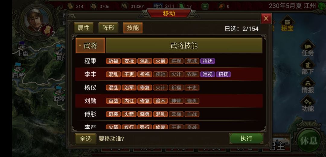 如图,当武将太多的时候,想要移动拥有某些技能的武将到某个城市,如果有搜索排列功能,一,可以很快找到这些武将;二,可以清楚的知道某个城市有几个拥有这种技能的武将,方便选择留守和移动,望采纳