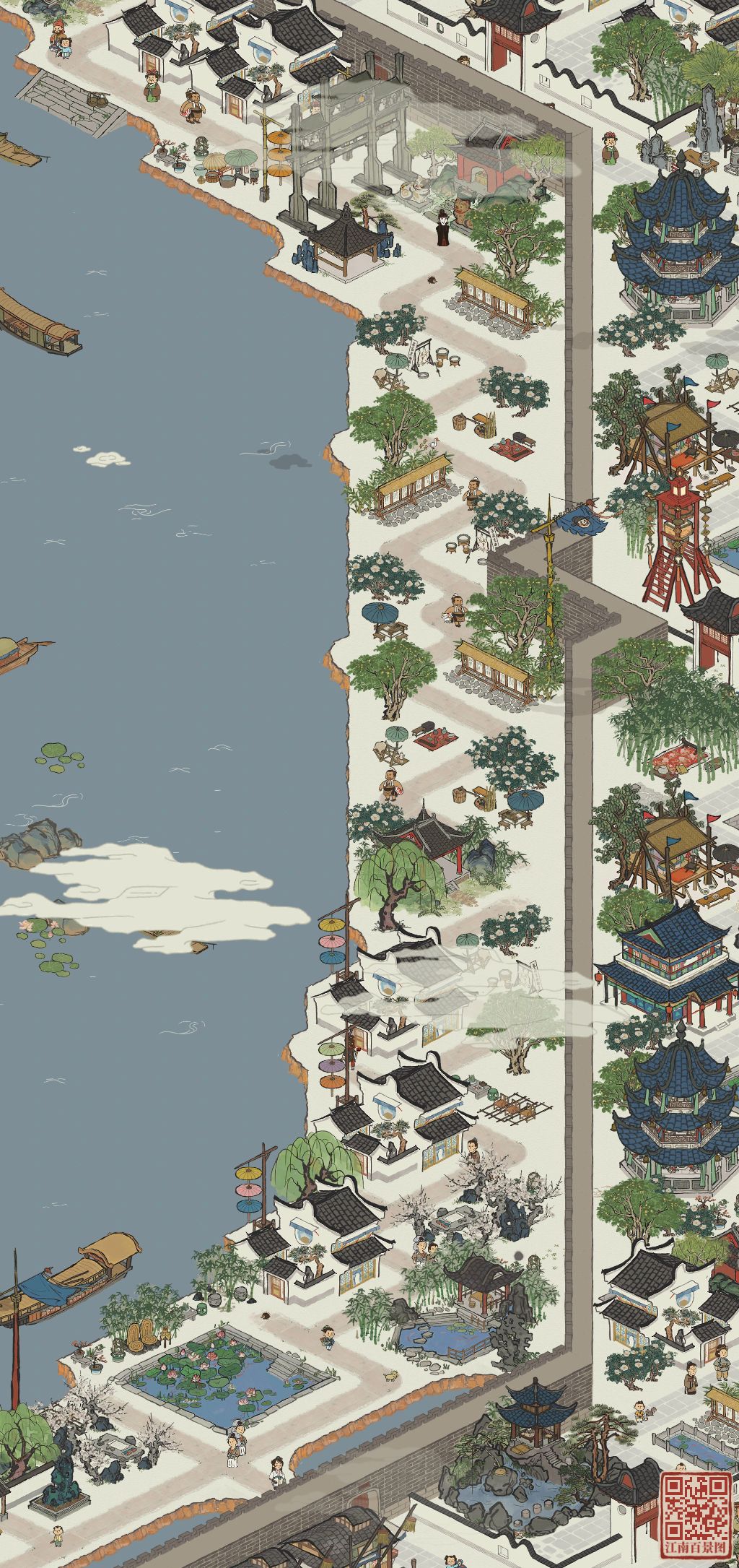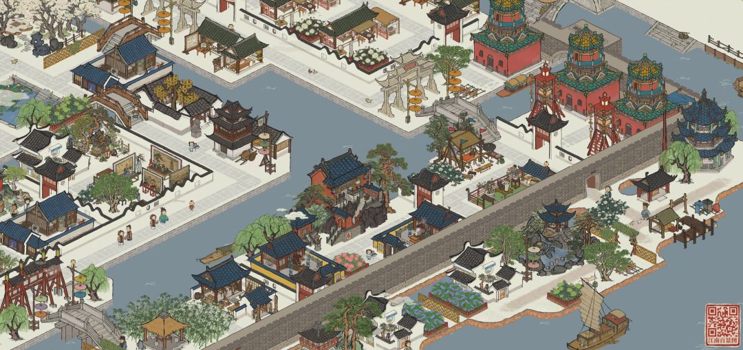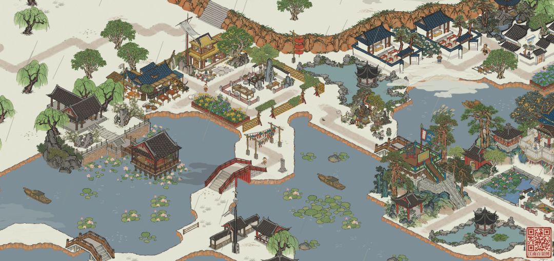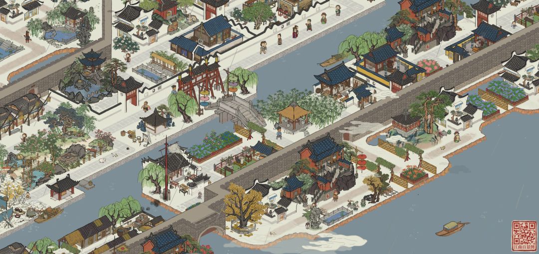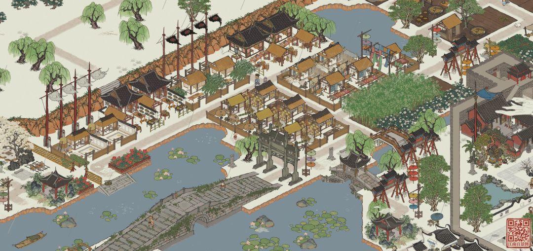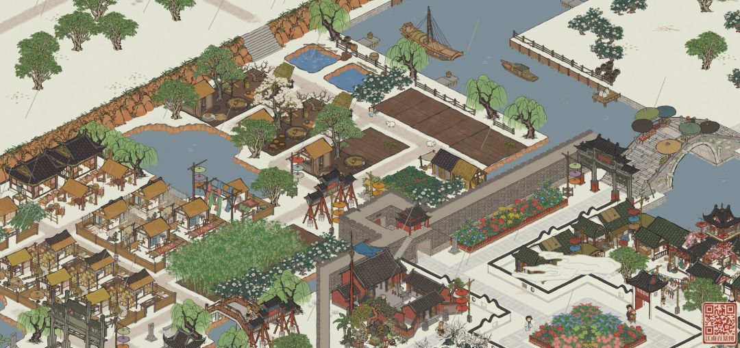 杭州府布局和以前一样遵循路都能走通的原则。与之相对,功能区划分不再那么明确,而是注重设计感。