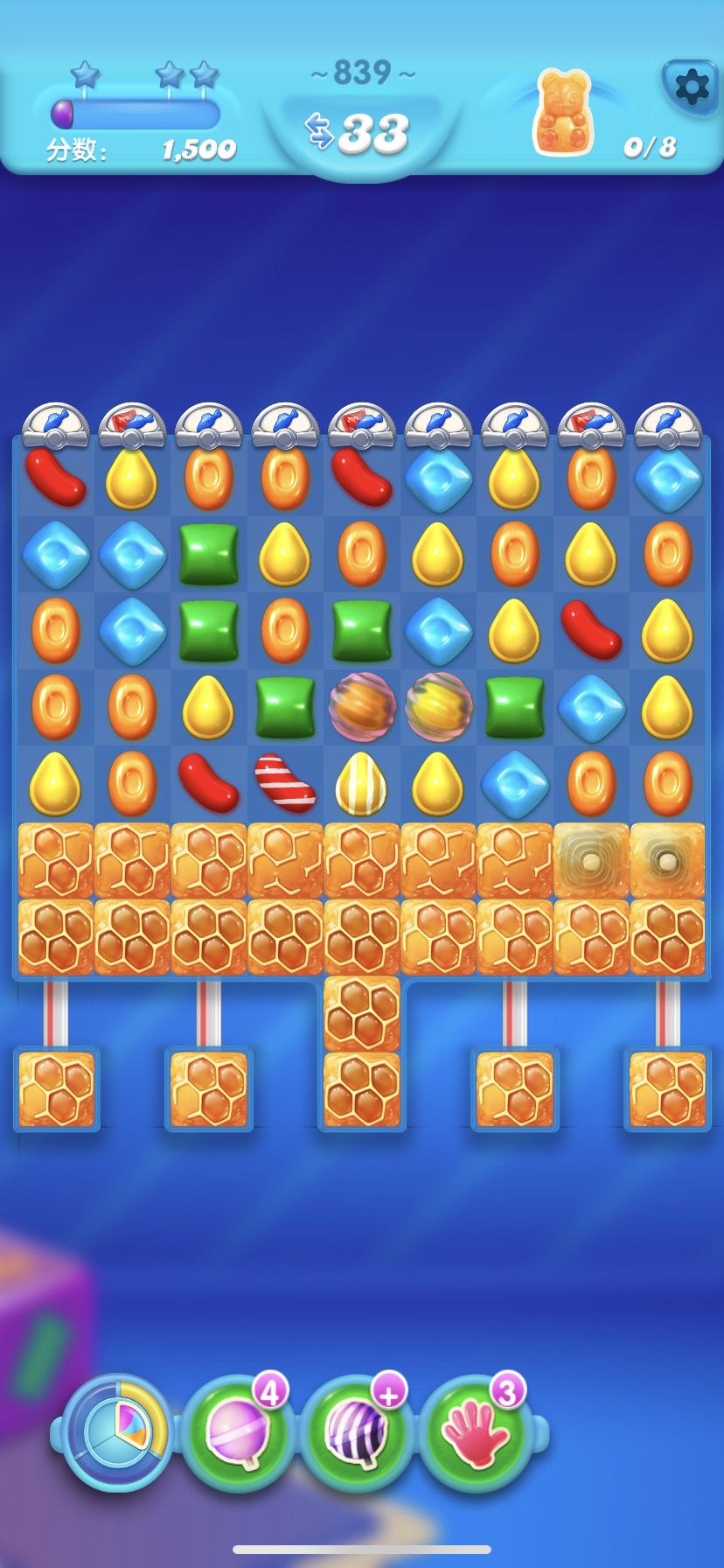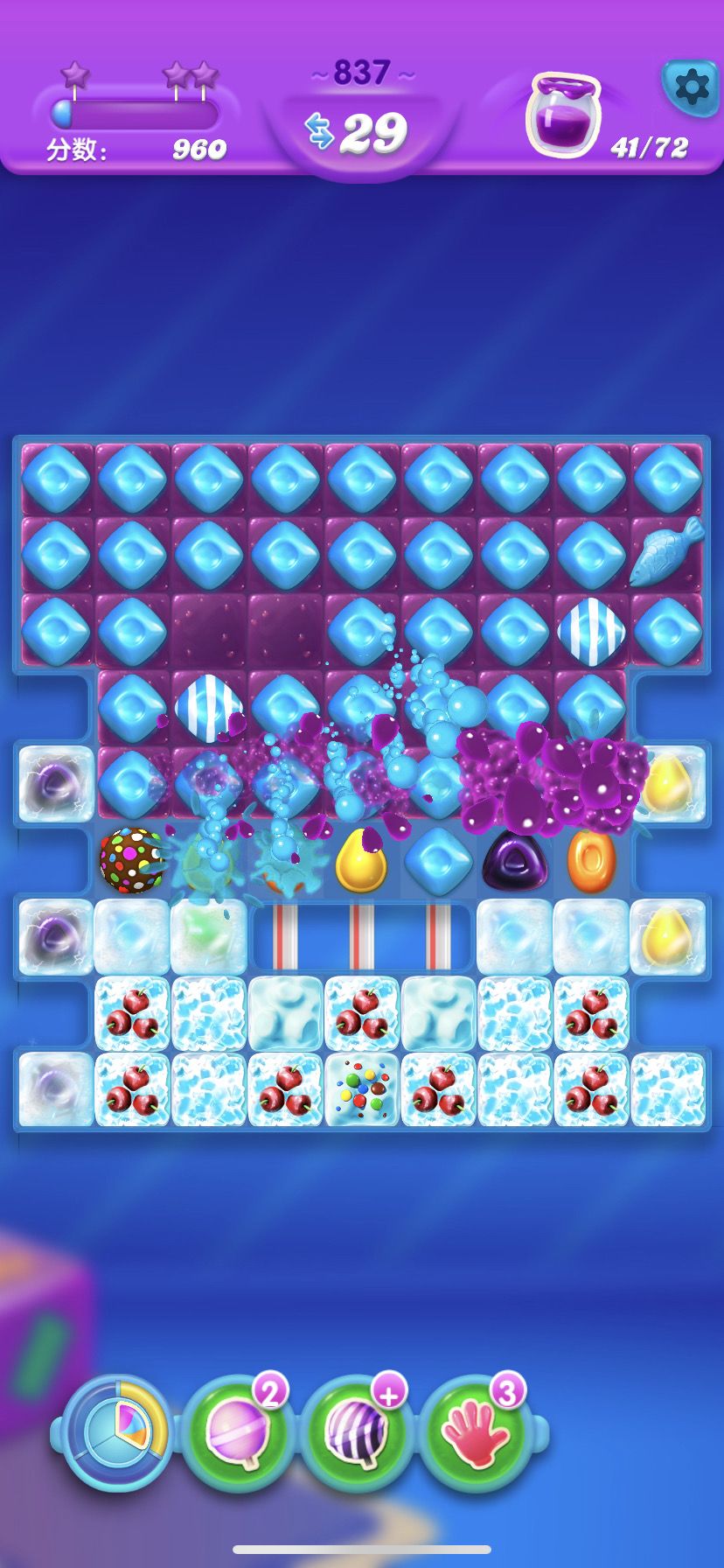 两颗彩虹糖结合,全屏消除一层。