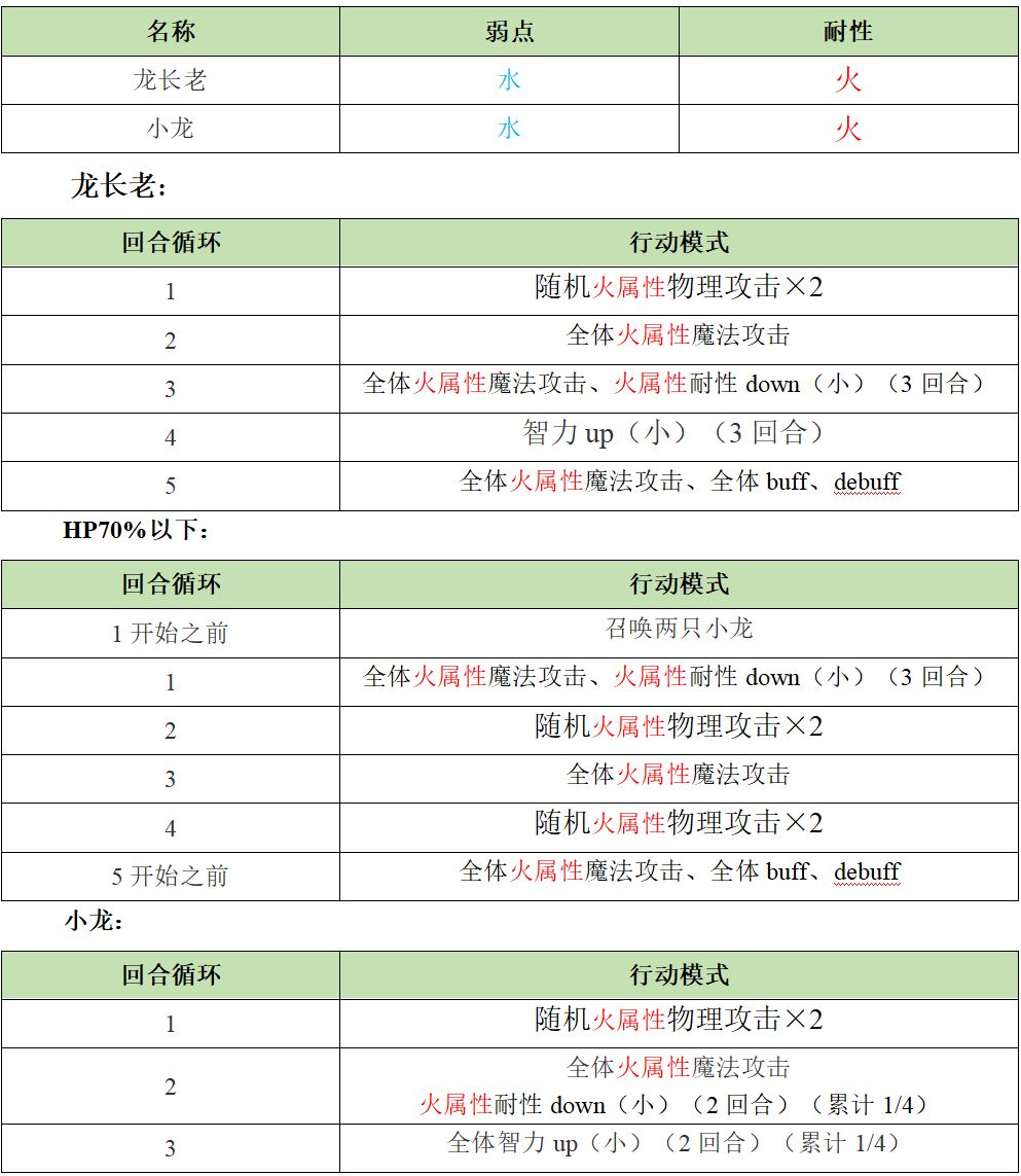 简评:一般4T杀,第5回合伤害很高。HP小于70%时,每5回合召唤两只小龙,小龙会减火抗,加智力,总血量350w左右。