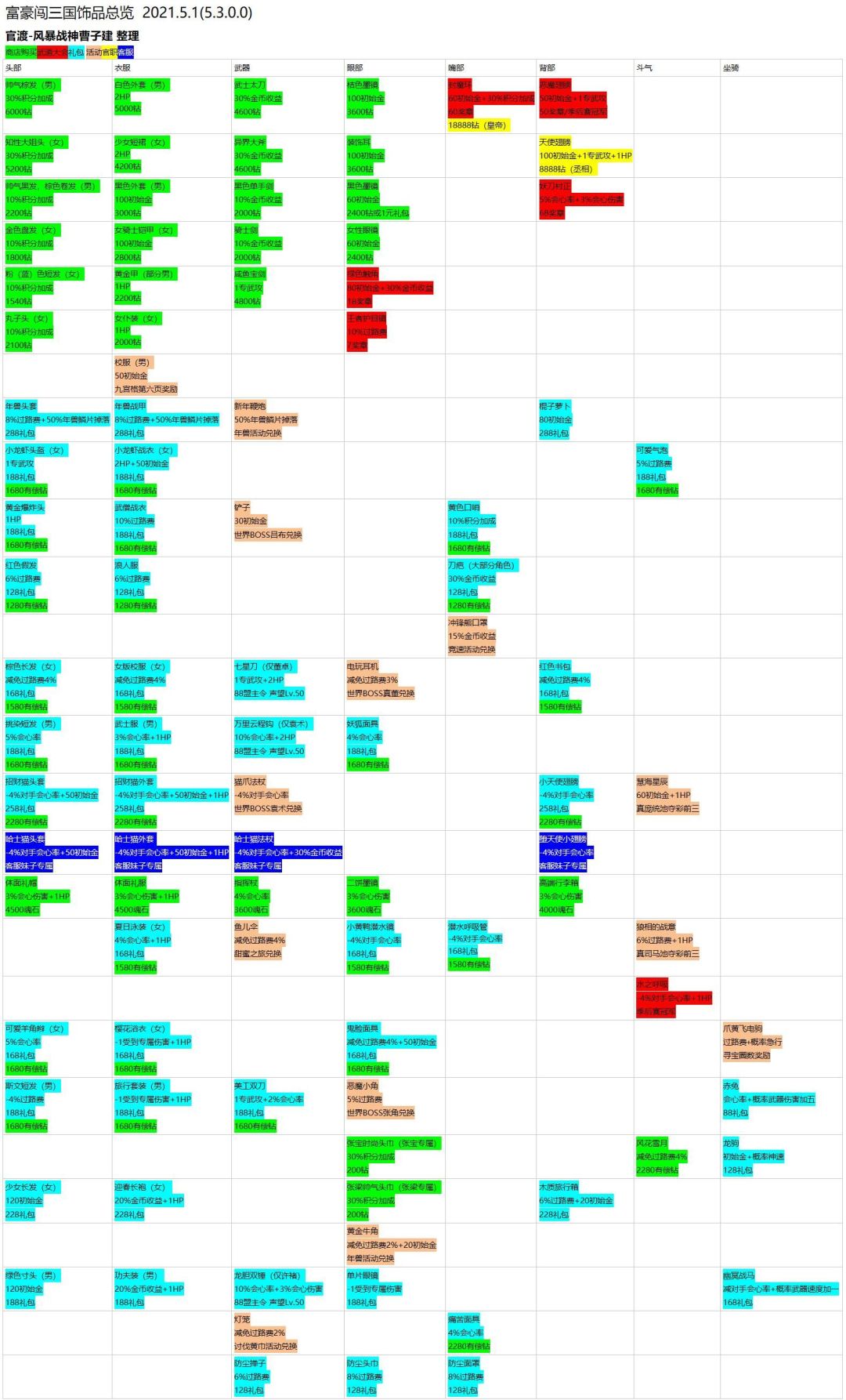 富豪闯三国饰品总览 2021.5.1(5.3.0.0)