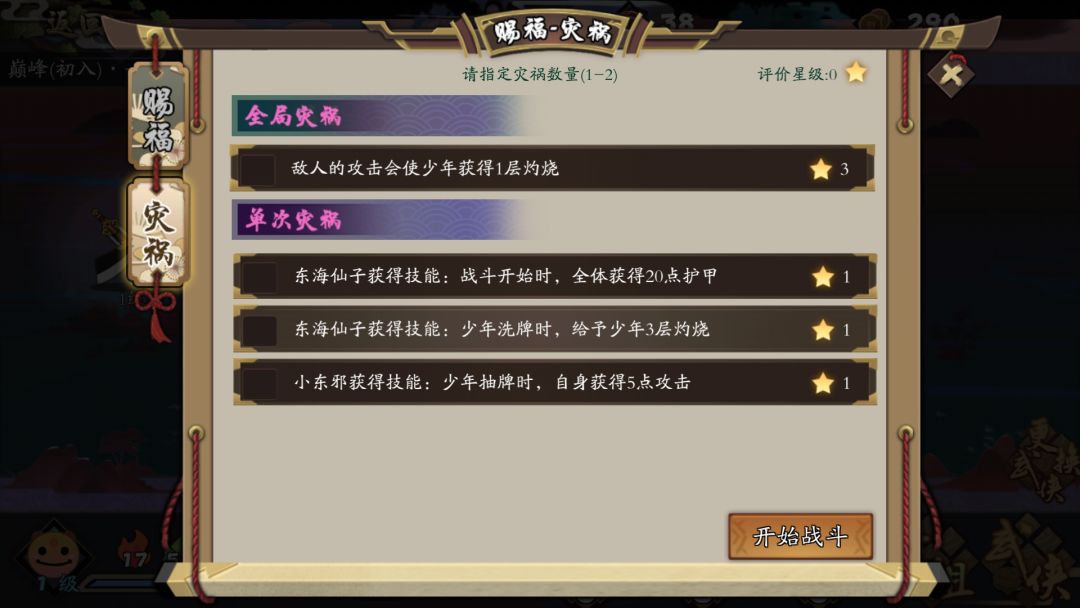 全局灾祸是核心,想要得到高星几乎都必点,一般的词条都非常垃圾,不会增加太大的挑战难度,只有少数几个非常恶心。目前个人体验来说最恶心的就是敌人回合减少手牌,而且可以叠加!!!