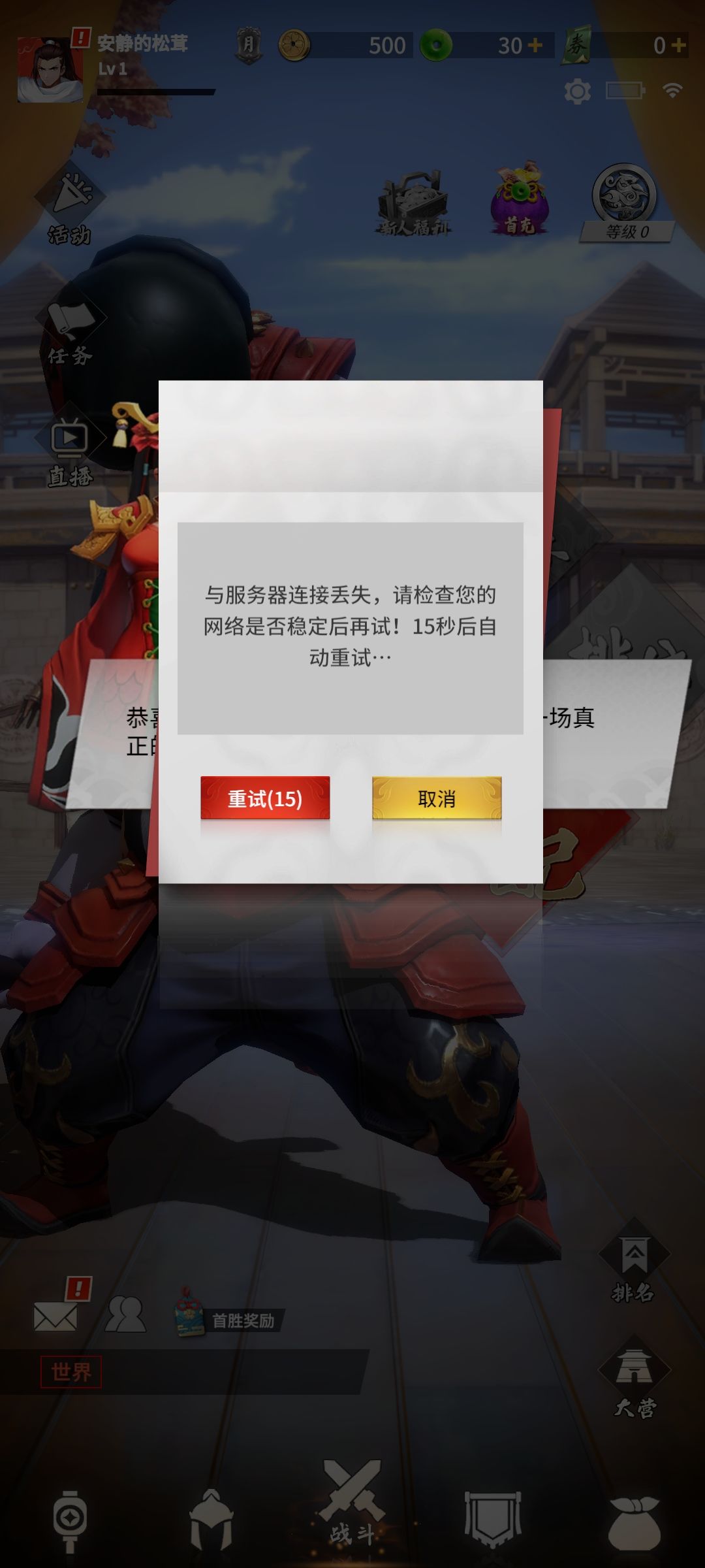 新手教程完成后,就突然很卡,然后断线。游戏关闭重启,手机重启都还是这样情况。手机是redmiK30pro