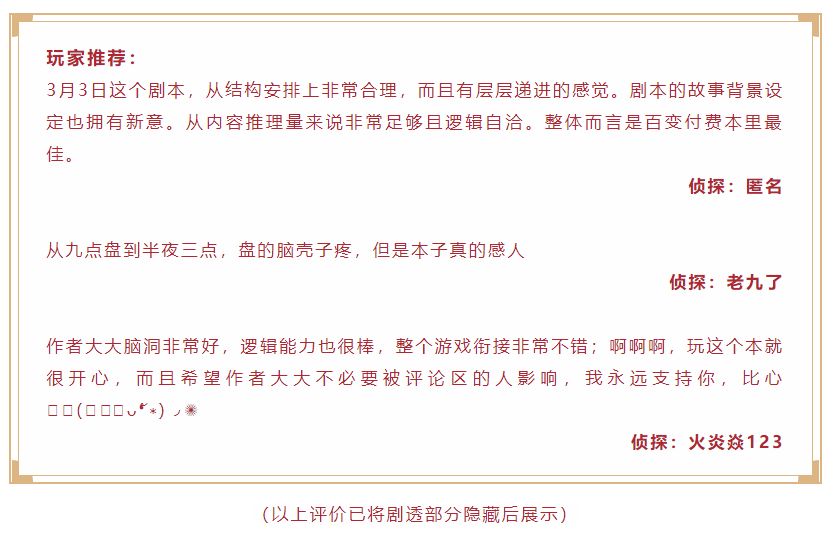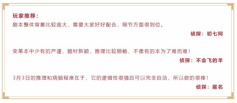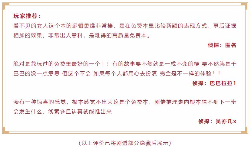 谢谢每一位参与评选的侦探!!!下面来公布本期剧本大赏评选的粉丝福利噢~恭喜以下20名侦探成为本次剧本大赏的幸运儿!