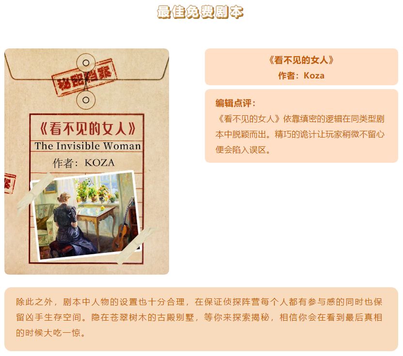 除开专项奖外,所有奖项提名最多的剧本,将被评为本年度最受侦探喜爱剧本!