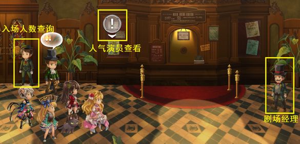 完成主线25章后,在尤尼冈右上角和马车车夫对话,即可前往剧场。和剧场经理(负责人)对话可演出剧本;点叹号可查看当前人气演员;和左侧检票员对话可查询目前总入场人数