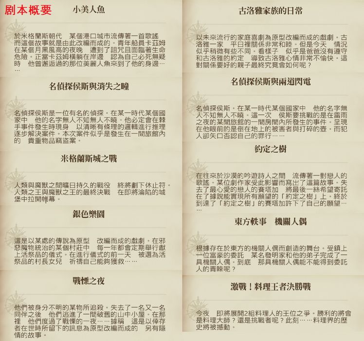 目前共有10个剧本,每个剧本首次达成以下3种评价时可获得奖励,共40石。
