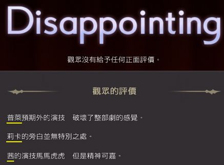 注:莉卡+尼洛+米蘭達+薩摩拉可以取得Disappointing评价。