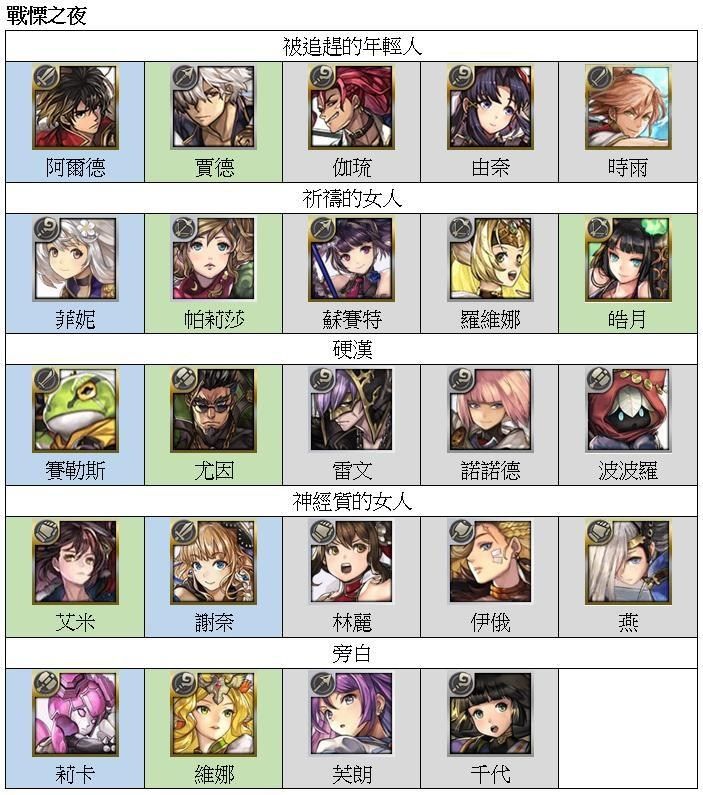 注:菲妮+阿爾德/謝提+賽勒斯+海蕾娜+艾米+拉克萊兒可以取得Excellent评价。