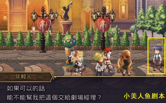 入场人数>100后,在剧场外与最右侧的年轻人对话。入场人数可在剧场内检票员处查看,每演出一次剧本,入场人数就会增加一些。