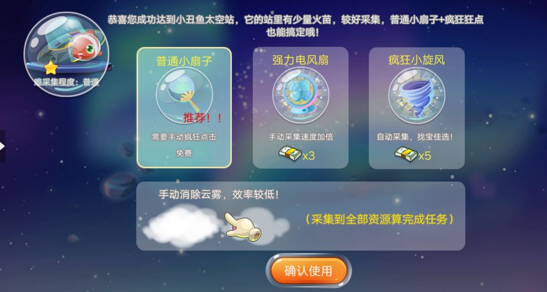 4、还可能被派去打扫太空站,消除全部云雾就可以完成任务啦~(注意左上角的难度提示)