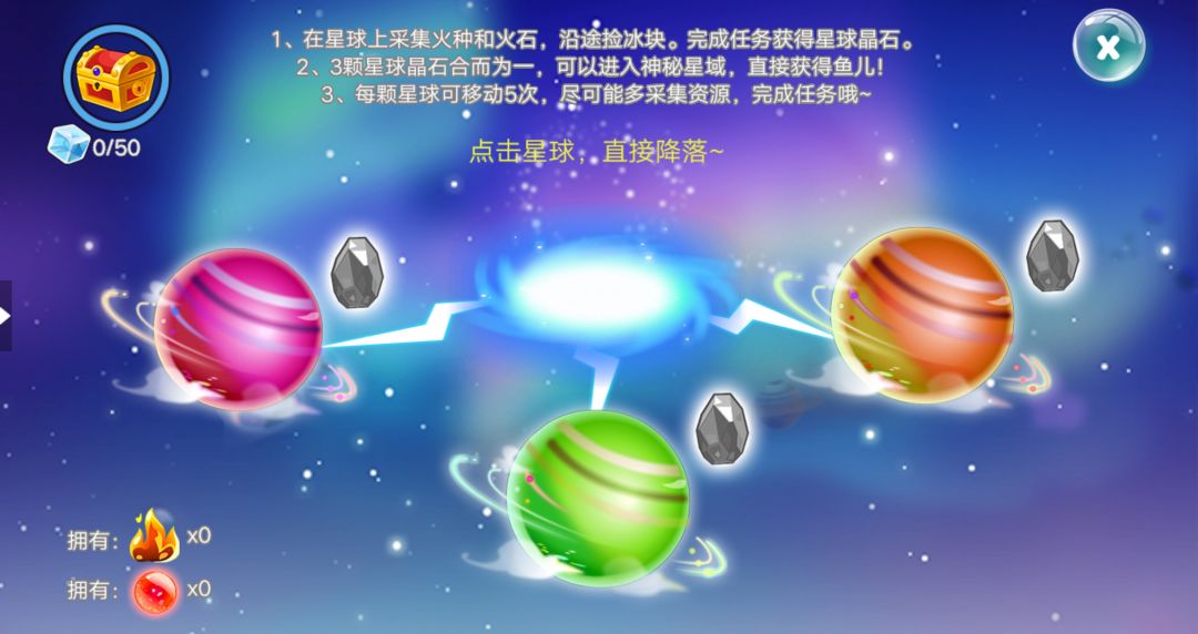 如果三颗星球的晶石全部获得,就可以进入神秘星域直接领鱼啦!~