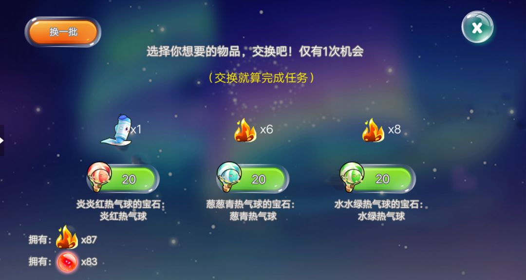 3、可能遇到宝石交换,换一次就算完成任务~
