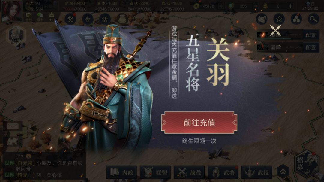 比如首冲6元就可以获得关羽,关羽不仅可以作为主力输出,拆解技能【水淹七军】也是相当强力的【输出】技能,堪称新手之友。