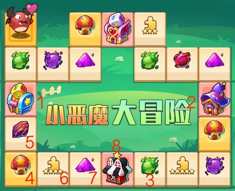 活动期间投掷骰子,小恶魔会根据骰子点数进行移动。当小恶魔停留在不同位置时,将会获得对应的道具材料或触发相应效果。