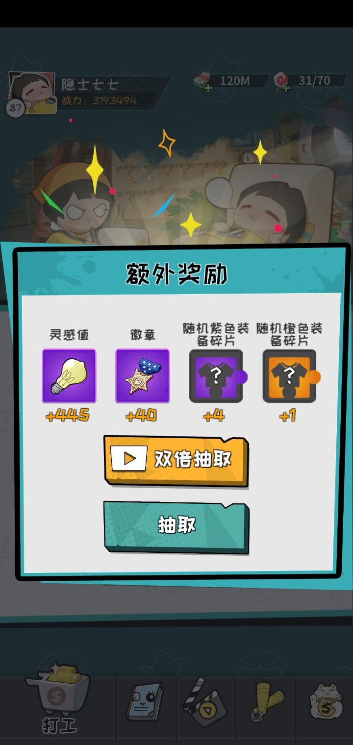 钞票获取,打工报酬双倍和额外奖励在后期显的寥寥无几,也就没人总是看广告;