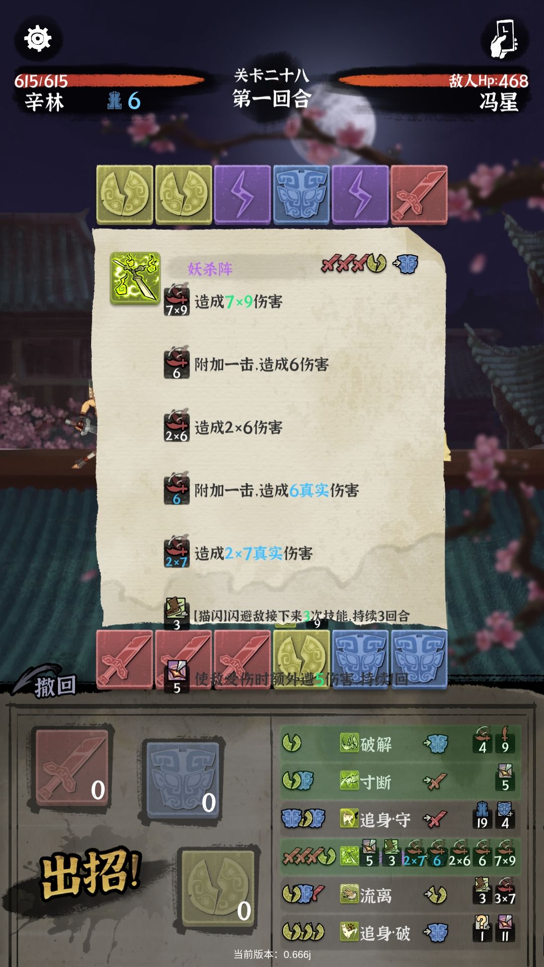 开局起手能触发闪避就优先搓闪避的招,出不来合适的招该SL就SL,注意流离闪避是2回合,妖杀阵的闪避是3回合,后一个技能会覆盖前一个技能的回合数,也就是说你如果先搓了妖杀再打出流离,那么闪避次数会相加但是持续回合都变成了2回合,也可以看下左上角的buff栏。保持身上闪避buff的不间断是最重要的,比竟输出嘛,活着总会有的,很多时候打着打着不知不觉对面就死了![[嗒啦啦2_起了杀心]](https://img.tapimg.com/market/images/347f4af191f7dbd436f74aabcf4616a9.gif)