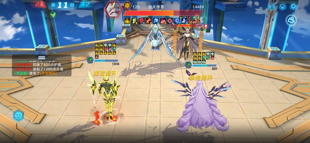 我先用的奇灵王和吉拉,吉拉大招打出了1.58w的暴击,紧接着第四回合接个二技能送走了帝俊,这是比较理想的情况,奇灵王的话主要作用就嘲讽降属,装备带修罗鬼影,然后吉拉换终结兔开出大放出春风天气,下场换弗丽嘉尽情输出,二技能得续好,奇灵王尽量多嘲讽修罗