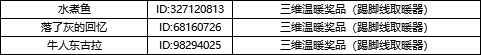 7、游戏社区在奖品缺货时有权在同等价值范围内以其他礼品替代奖品,中奖用户不得以任何理由要求替换其他礼品或折现,且一个活动,一个用户只能获得一个奖品哦,若有重复获奖的情况可及时提醒管理员修改名单~