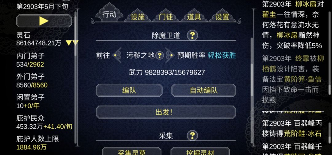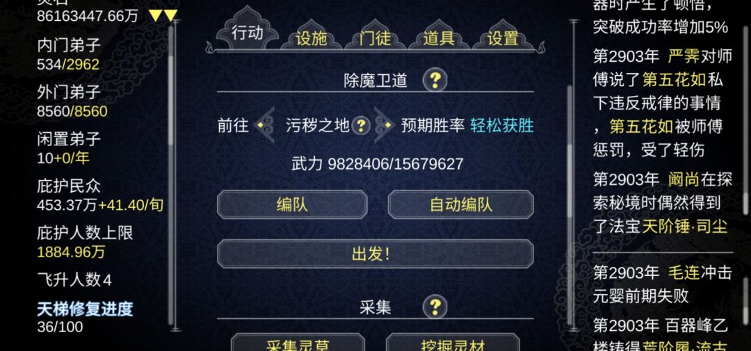 这个游戏太休闲了,什么时候飞升的,要不是掌门飞升我还没发现先,编队里一堆人闲的没事干耗费我灵石