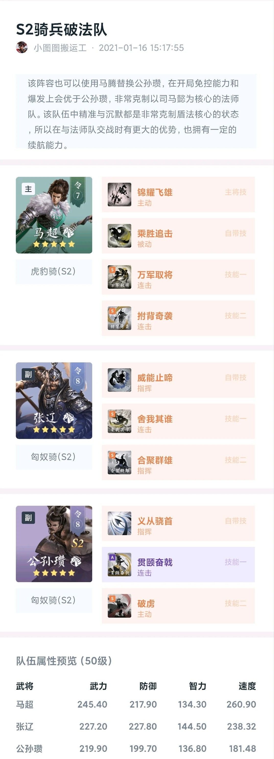今天小图为大家带来了大神主公推荐的新骑兵破法队搭配,快来看看吧~
