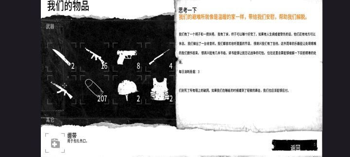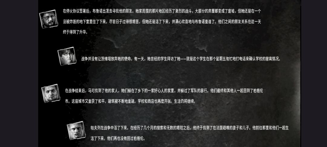 时隔六年再次评价,一如既往的好玩,开局做把刀去超市救下被士兵骚扰的女孩拿到枪后面非常简单,不愿意当恶人的去废弃的建筑楼把狙击手做掉拿到狙击枪,去洗劫军营,机场,女支院(我这把图没有不知道是不是删了),轻松通关(一定要分工明确可以省事省资源,缺食物的话这些角色可以饿一天在吃东西,就是吃完没有饥饿第二天不吃第三天再吃)