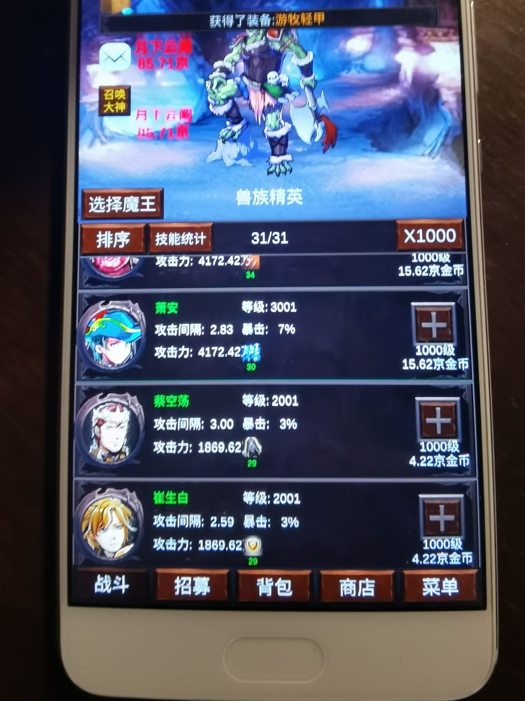 1.萌新佣兵金币技能最多带1个,多了都没用,提升的百分比远没有前期推关提升攻击来的快;