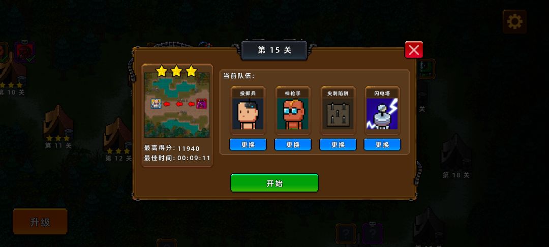 打完15关,等更新。找到技巧后还是挺容易的:1.核心思路:用小兵在远方快速铺路,不用考虑合成,敢死队都会死。注意把破箱子削掉防止占地方。等刷到钻石削去一大片墓碑,再铺上小兵。2.铺完小兵后,有时间了在基地旁搭建远程高级兵,慢一点思考位置关系,到三、四级兵就够用了,我用的是神枪手。3.位置关系多思考下能找到规律,类似2048,先想好合成位反推。把兵种扯开,一种兵占一块比较容易合成,不同兵占位置碍事。4.关键口可以放少量陷阱,但比较占位置不要多铺。