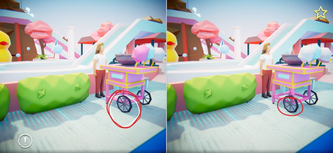 20250814请教一下为什么放大到一半的时候画面会又缩小?还是有点用不明白缩放。还有这两个地图明明有差异但点了竟然不是,感觉在找茬类型的游戏里这是不应该出现的错误。然后就是音乐不知道为啥有点悲情20220210还没更新,玩完了世界五最后一关,希望放大缩小的程度能再大些,还有放大的时候镜头上下转的角度变得太小了,这些问题在最后一关都有体现