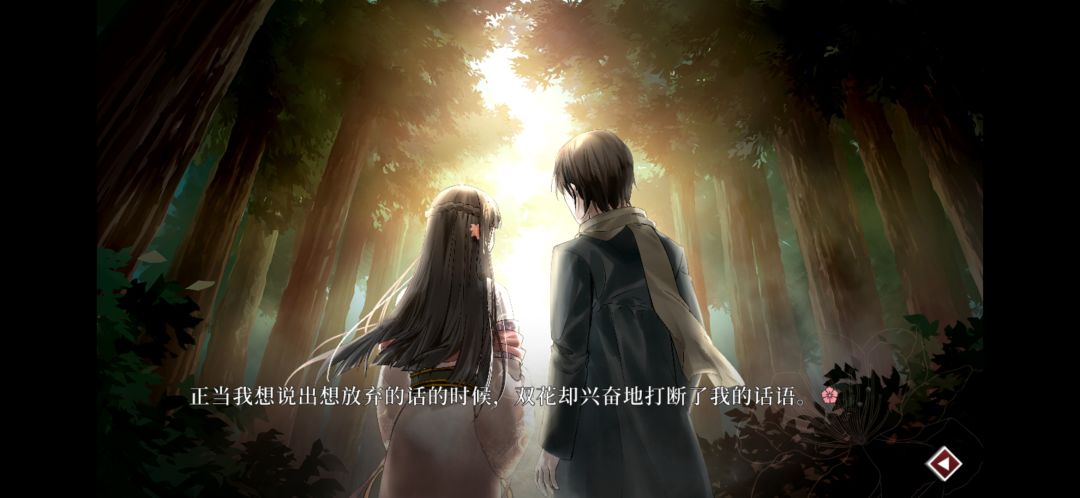 剧情 : 五星。 我只能说非常nice,很棒,虽然部分剧情,选择后续什么的大抵都能猜出一部分,但很多选择和剧情也能给我带来惊喜和意外,就好比最后跟双花走出树林的时候,我真的以为可以带着双花体验人生百态,没想到是把刀子喂我嘴里了,没想到没想到。或许是我主观意识太强烈了,期盼他们能这般美好下去吧。