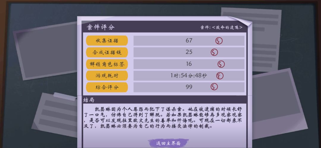 6.最后证据链线索结合的时候,那些线索最好按照房间分类一下,要不然不好找还容易想不起来,而且当证据链没有填完时可以有个标记。这些对玩家都会很方便。