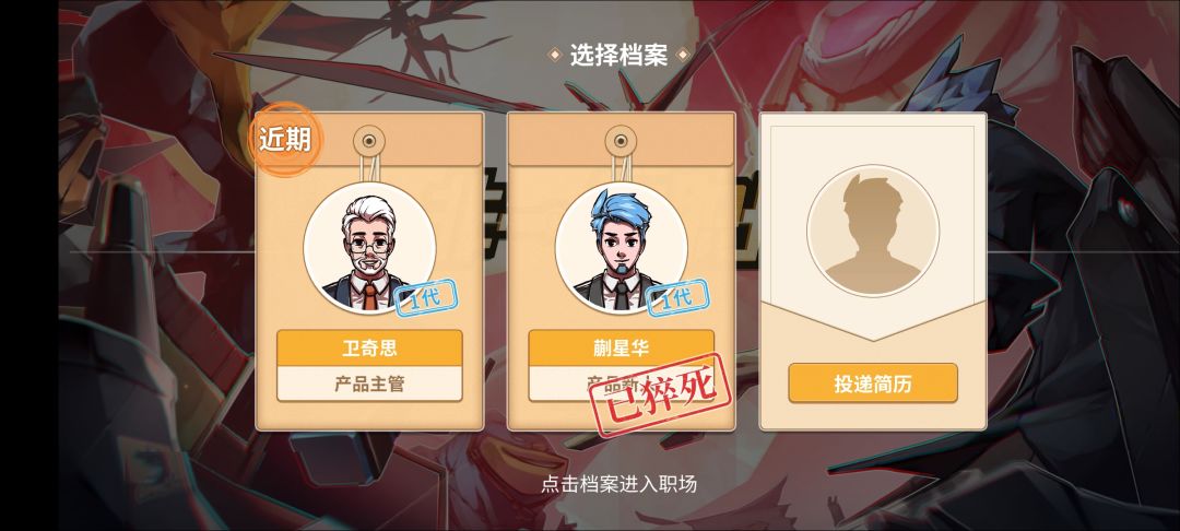 现在开了两个档案,第一个档案猝死了……猝死之后会变成另外一个人顶替原来那个还坐猝死的那个位置然后有两个选择一个是跑掉一个是继续干。猝死还上了新闻还挺真实的。第二个档案,好不容易娶了冰冰老婆但是52才生孩子,她的要求好难,后来用命运的小手改了试了三次才生了孩子(这是可以说的吗hhhhhhhh)