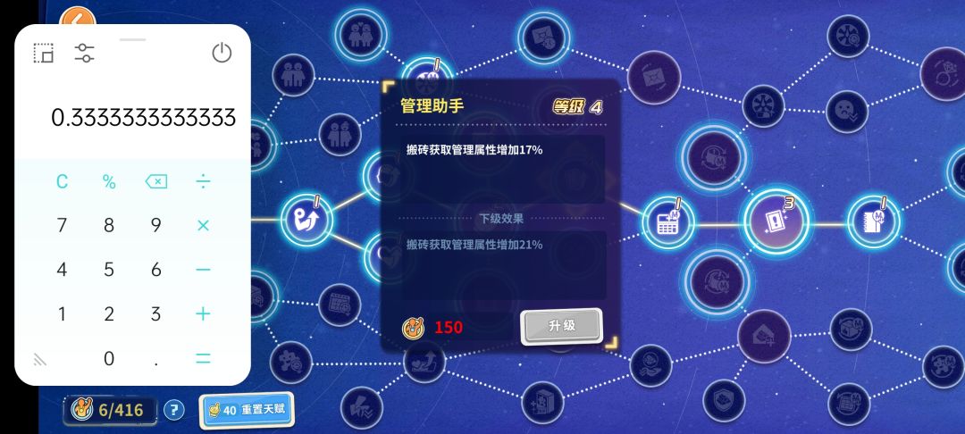 最后的最后我想真诚吐槽一下这个天赋系统深坑,举个例子管理初始是三点,拿到原来的33%才能到4点(不计四舍五入)也就是要8级,我轮回一次就升了四级,这要肝到猴年马月呀😨,希望官方大大能上调一点(良心的建议 )
